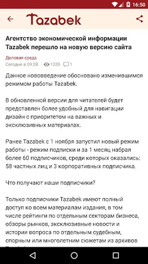 Tazabek quickly found its audience due to the quality and scope of information publications. Every day the site is visited by over 30 thousand. Of readers who view more than 60 thousand. Pages per day. The monthly audience of more than 200 thousand. People in Kyrgyzstan and abroad. Audiences Tazabek - businessmen, managers, heads of economic departments and qualified professionals who always need to be aware of the news. As the Tazabek format significantly expanded.