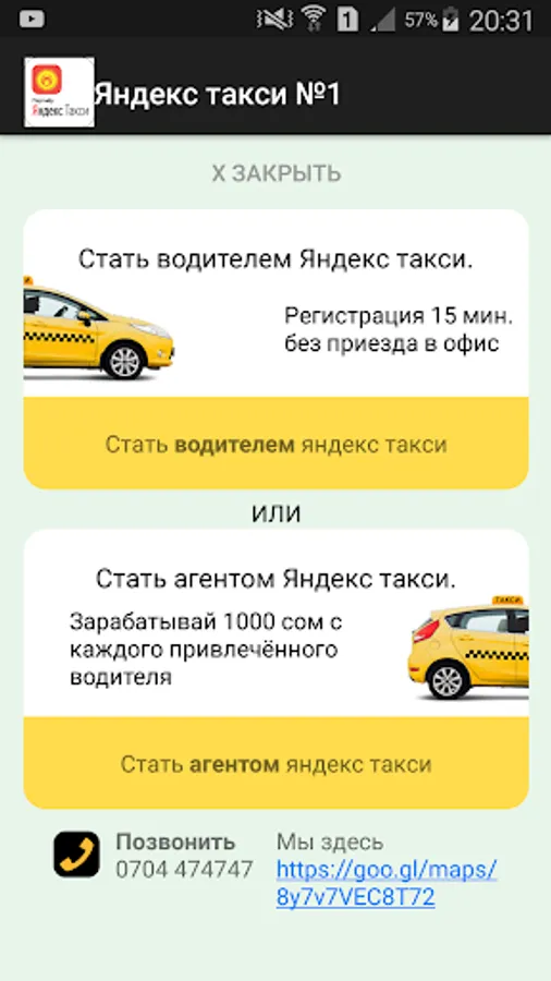 The application allows you to register (become a driver) in Yandex taxi, without coming to the office, with an official Yandex taxi partner in Kyrgyzstan.