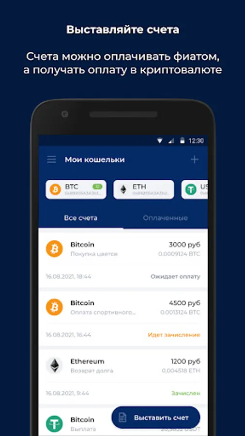 Выставляйте счета, которые можно оплачивать фиатом, а получать оплату в криптовалюте.