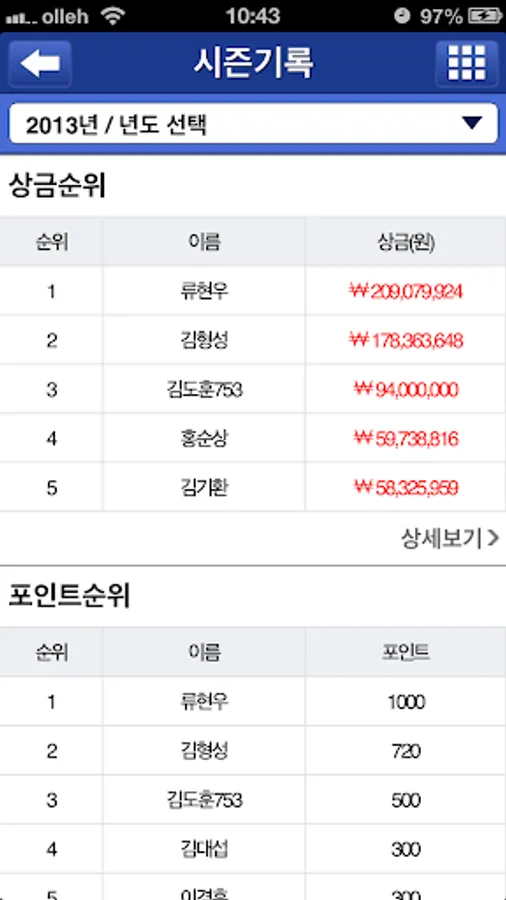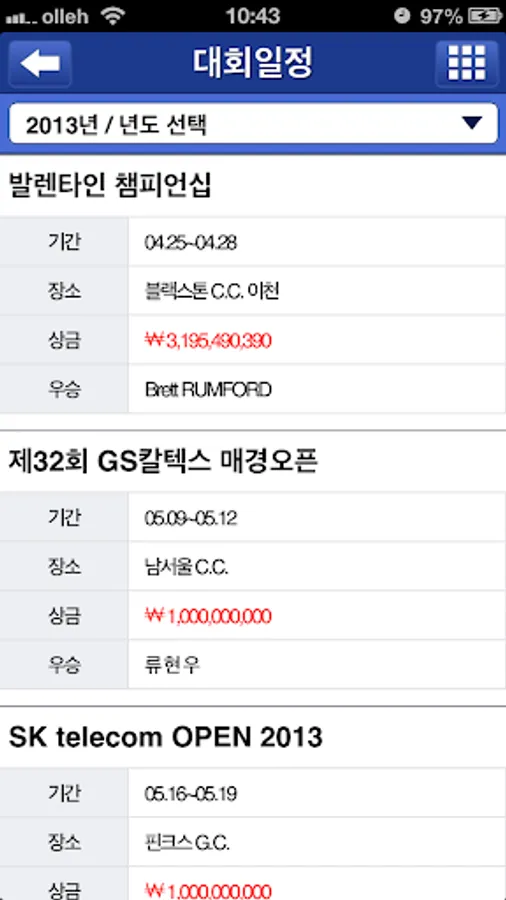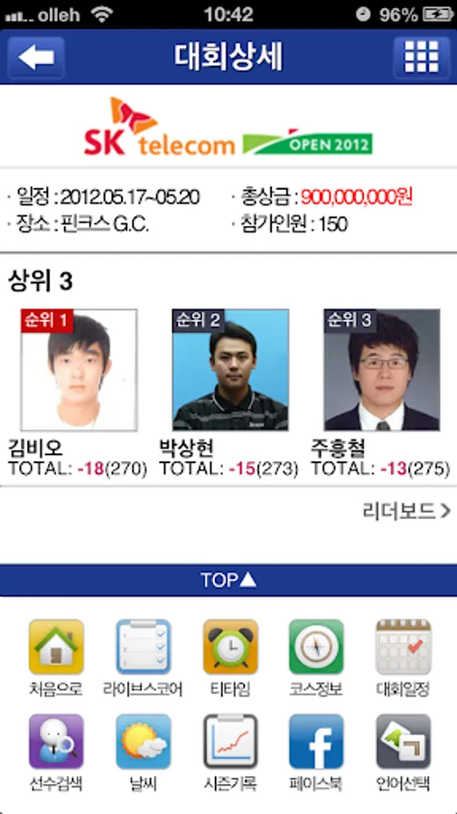 - Applications can determine the schedule, etc., and various records of the current season as KOREAN TOUR ongoing real-time scores, Joe organized, stadium information, statistics of players