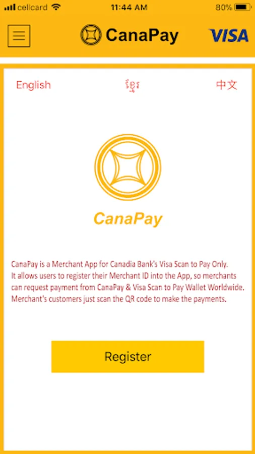 CanaPay is a Merchant App for Canadia Bank’s Visa Scan to Pay Only.