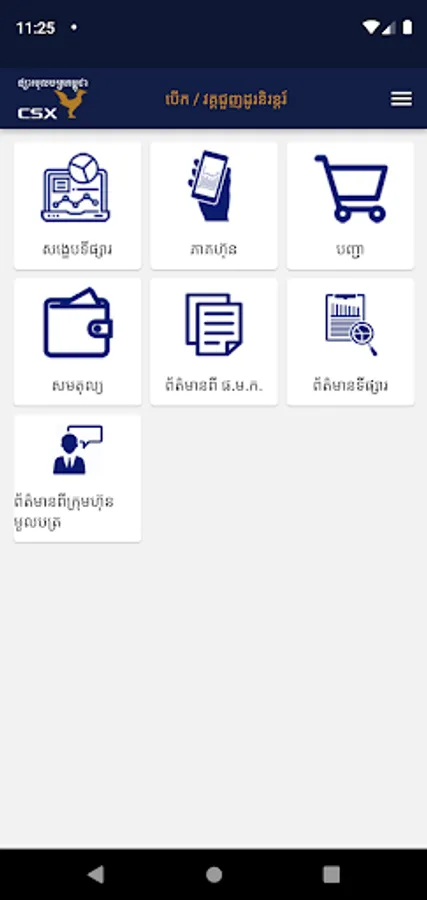 With our new mobile trading app, investors can conveniently and securely trade stocks listed at the Cambodia’s Stock Exchange. CSX Trade is equipped with various functions allowing users anywhere to place orders, view current and historical market data, along with trading account data with just your mobile.
