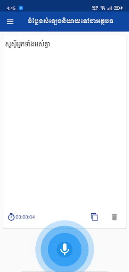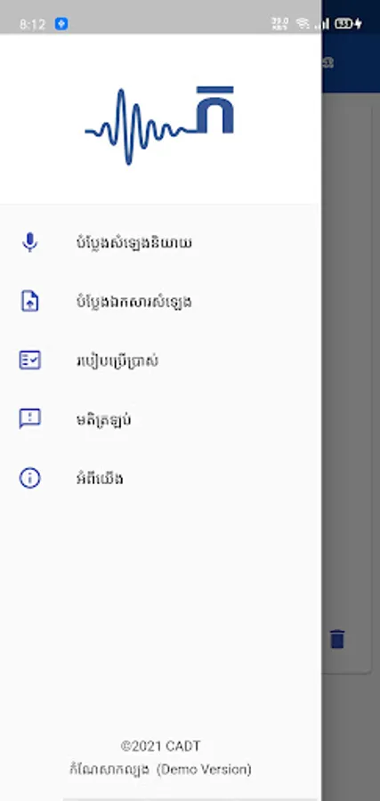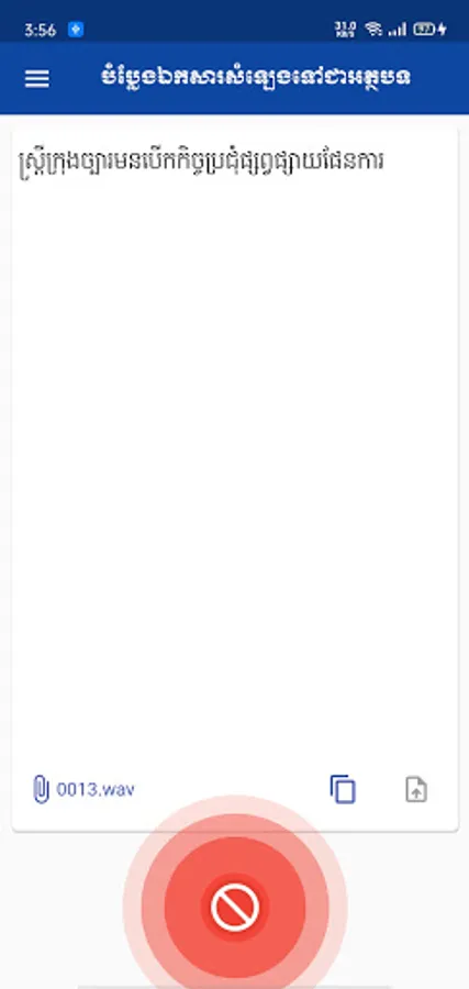 Khmer Automatic Speech Recognition (Khmer ASR) is an application that uses Artificial Intelligence technology to automatically convert speech and audio files in Khmer into written text.