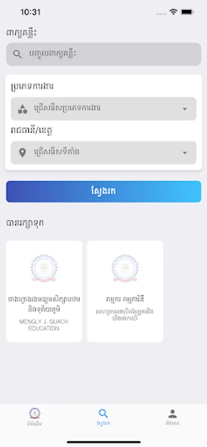 • Search job vacancies by Key Word, International Standard Classification of Occupations (ISCO), Economic Activity and Location in Cambodia.