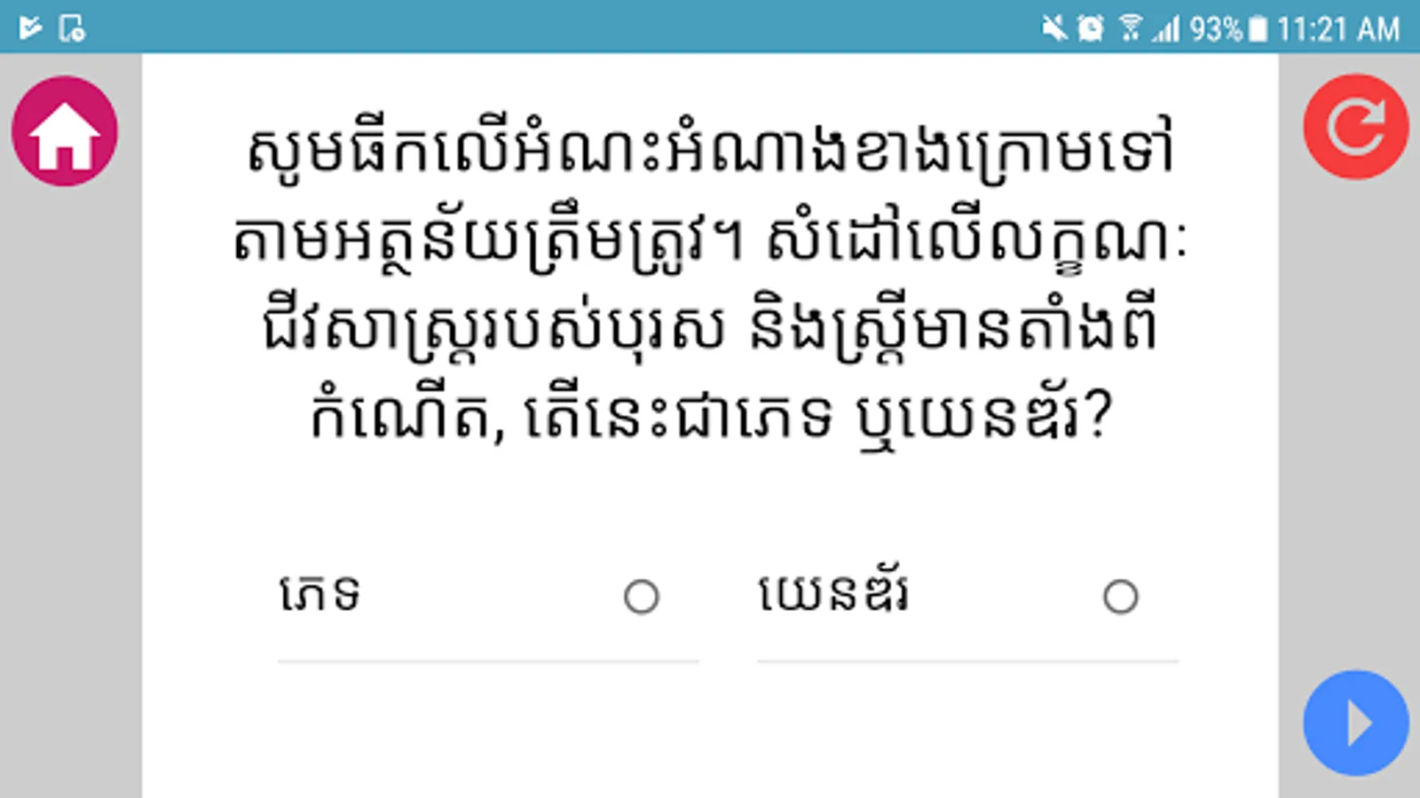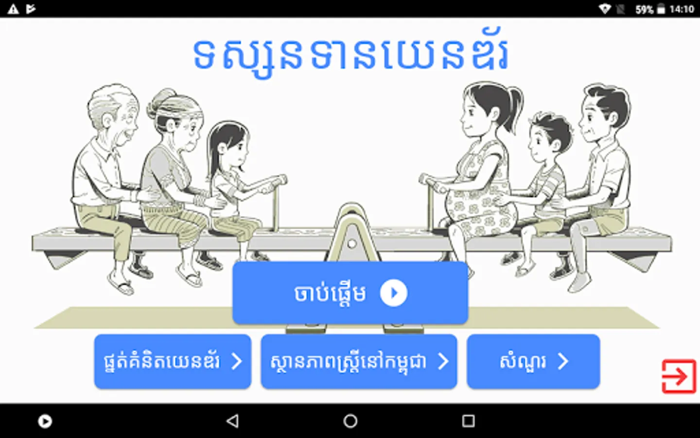 Gender Concept is an e-learning tool that provides basic knowledge about the concept of gender, and measures the user’s level of understanding on this topic through a quiz. The first two parts clarify the definition of gender and explain gender stereotypes. The next part provides information about the effects of gender-based violence for Cambodian woman. The final part is a quiz on the content of application.