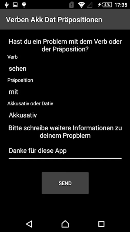 It should make it easier for people who are currently learning German or for German-speaking users to look into which prepositions some verbs are formed. Whether the accusative, dative, genitive or nominative is used for the formation of the preposition strain.