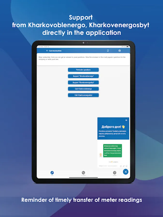 - support office from Kharkivnenergozbut on issues tariffs, personal account balance, etc.