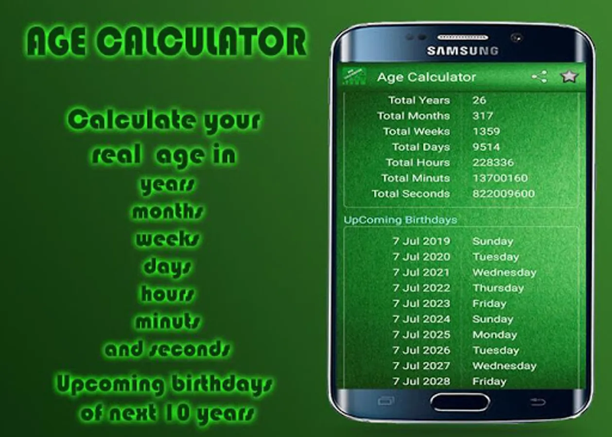 So download and install this app free of cost and get information about your life that you have spent till now.
