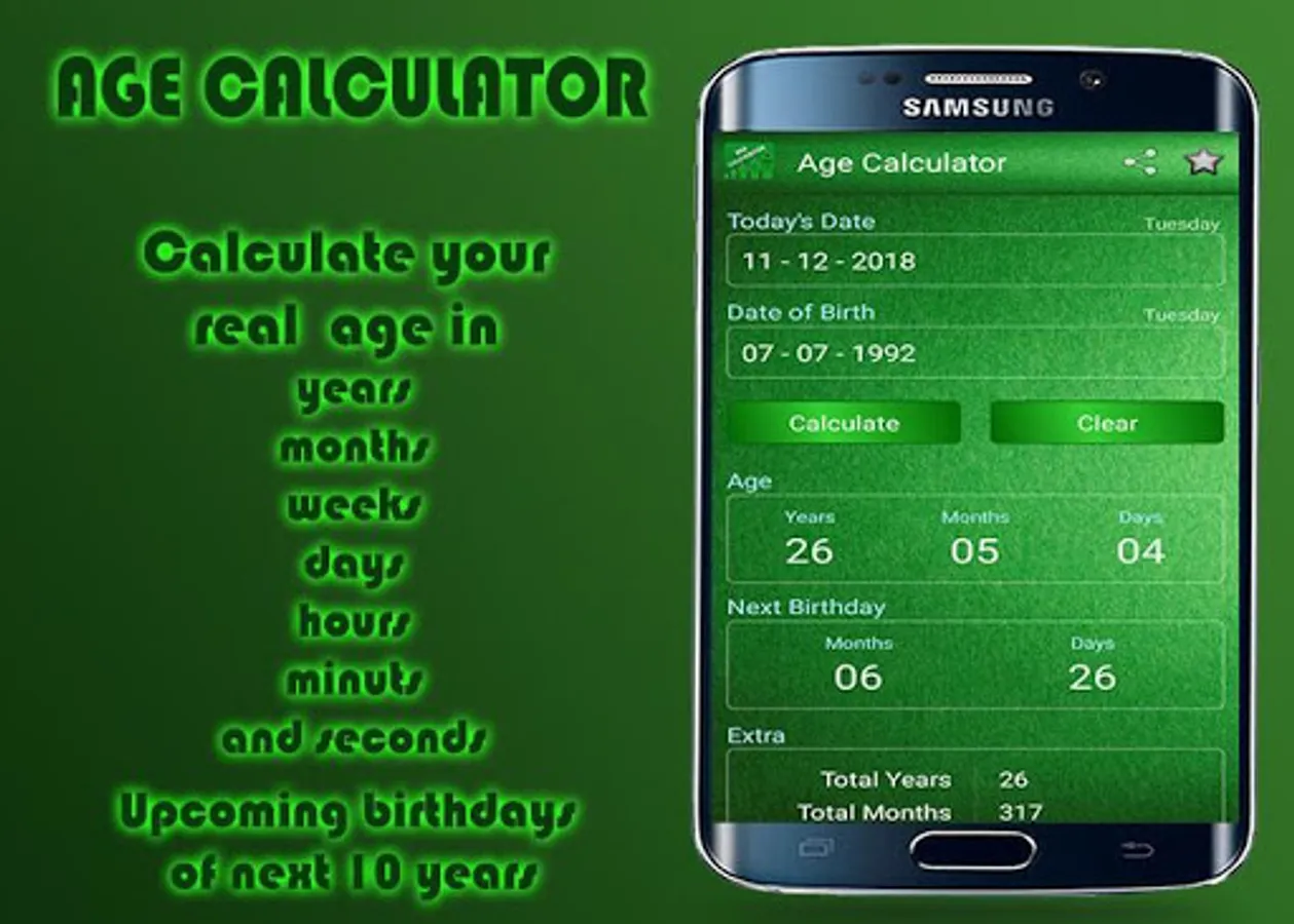 Sometimes it becomes very difficult to calculate one's life days or days between two dates. This app provides very easy interface to calculate the age. By using this app one can calculate not only the days but also calculate the hours, minutes and seconds of his life.