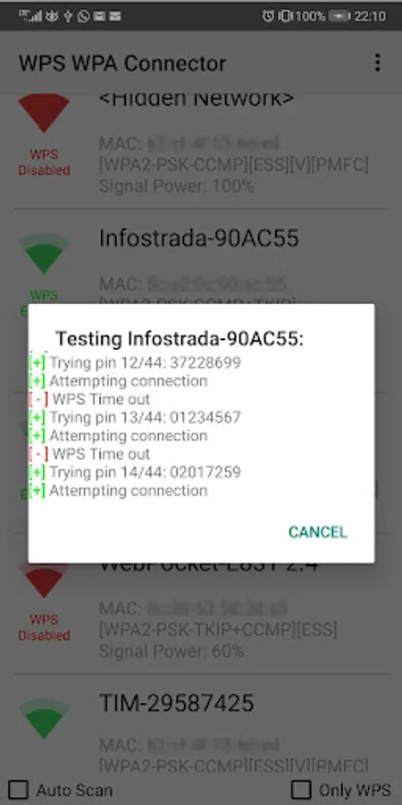 Test if your router is vulnerable through WPS bruteforce attack. Test the most common Pins and find the WPA key!