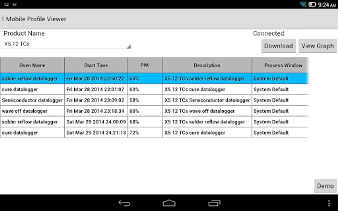 The Mobile Profile Viewer from KIC allows you to view and store temperature profiles on your Android mobile device. It gives you quick and easy access to process and product profile data right at your fingertips. The Mobile Profile Viewer syncs with the computer which contains your reflow oven or wave soldering temperature profiles and transfers the data to your mobile device via Bluetooth or Wi-Fi. You can review and zoom into details of the profile graph, statistics, and recipe settings for products profiled with your X5 or K2 KIC profiler and Profiling Software 2G.