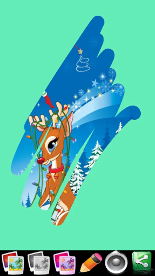 Scratch: Draw your finger over the screen to clear out a piece of the image.With three thicknesses of the pen and three modes, you can create nice effects or frames on the pictures. There’s Block Mode, that blocks out the image with a blue screen. As you draw over the screen, you see more of the image underneath. A creative person might make a nice frame or draw figures on the blue surface. The Black And White mode has a B/W image and as you draw over it, you get colors. The Frost Mode makes the image look like you’re seeing it through a window with frost all over it. As you draw, you clear some of the frost, making it look like you’re scratching away the frost on the window to peek inside.