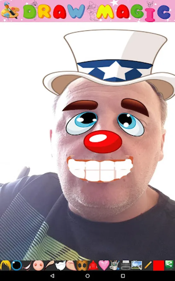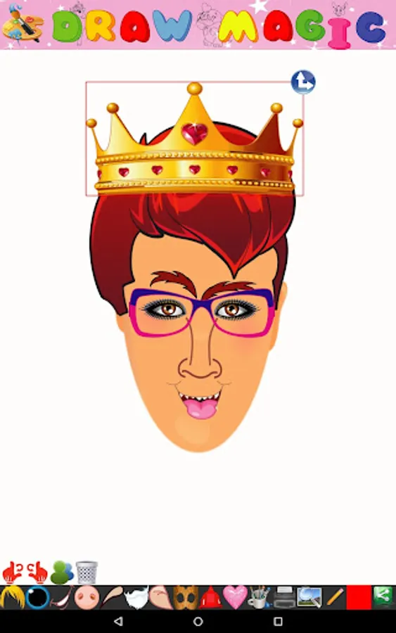 You can change every head part you want. Add glasses, hat. You can text or draw on top of the photo.