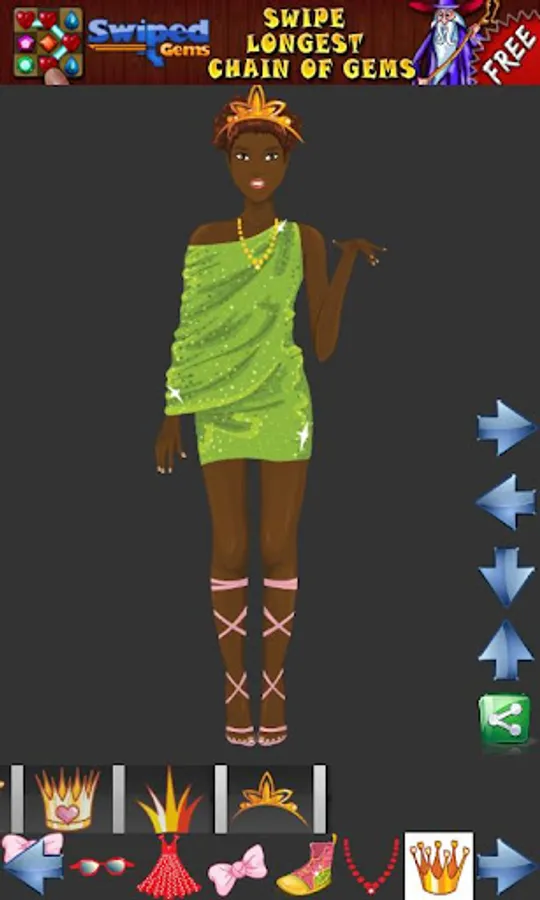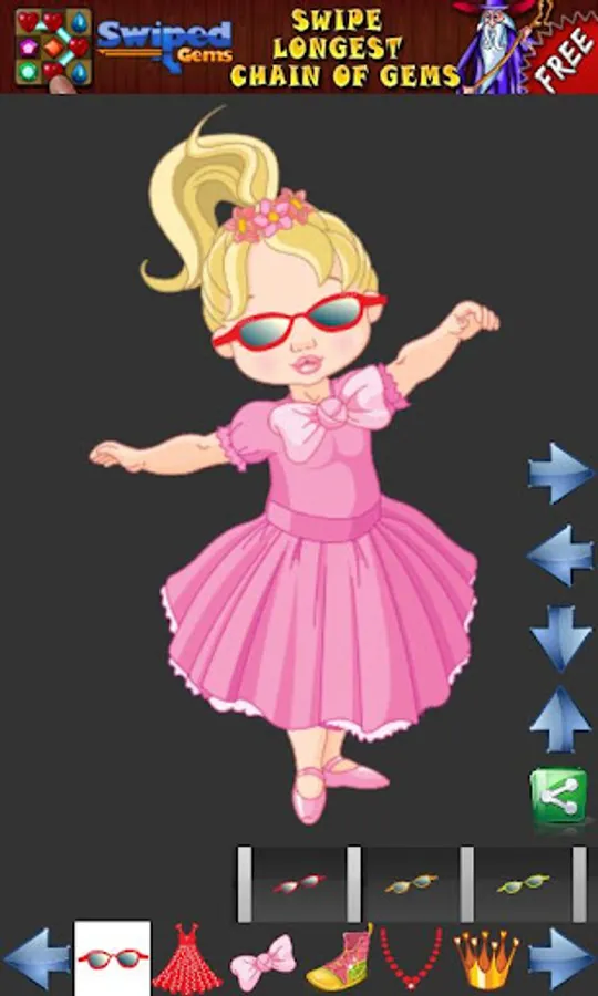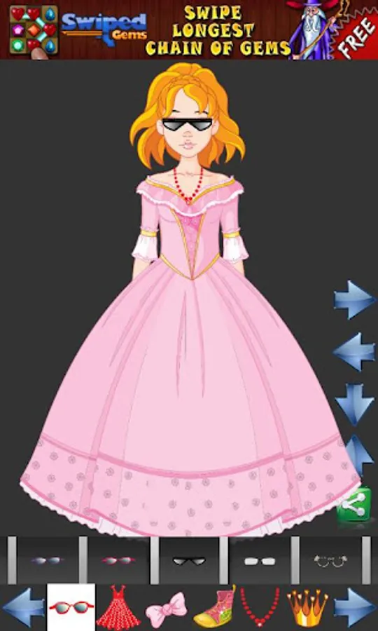 In this game, the child should dress a princess. During the game, the child learns how looks different clothes and what colors go together. The game develops imagination and creativity as well as improve fine motor skills.
