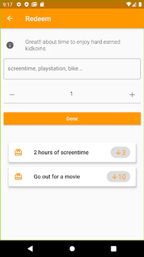 - Reward kids for anything with a currency called KidKoins (coins for kids) to encourage good behaviour