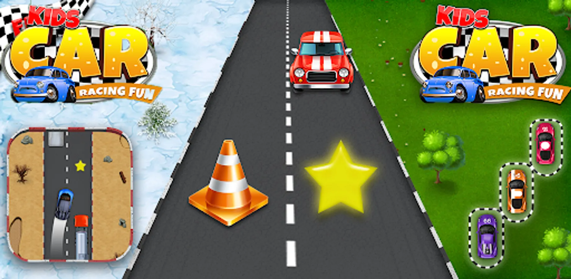 Can you race really fast without crashing? Can you collect all the stars? Then this kids racer is the best racing game for you! So get in your car and drive!
