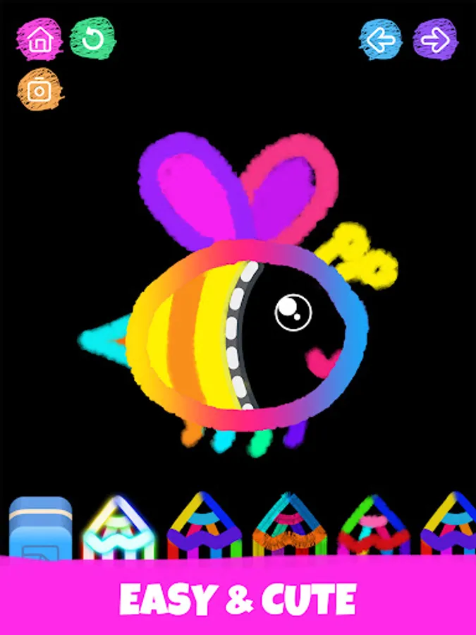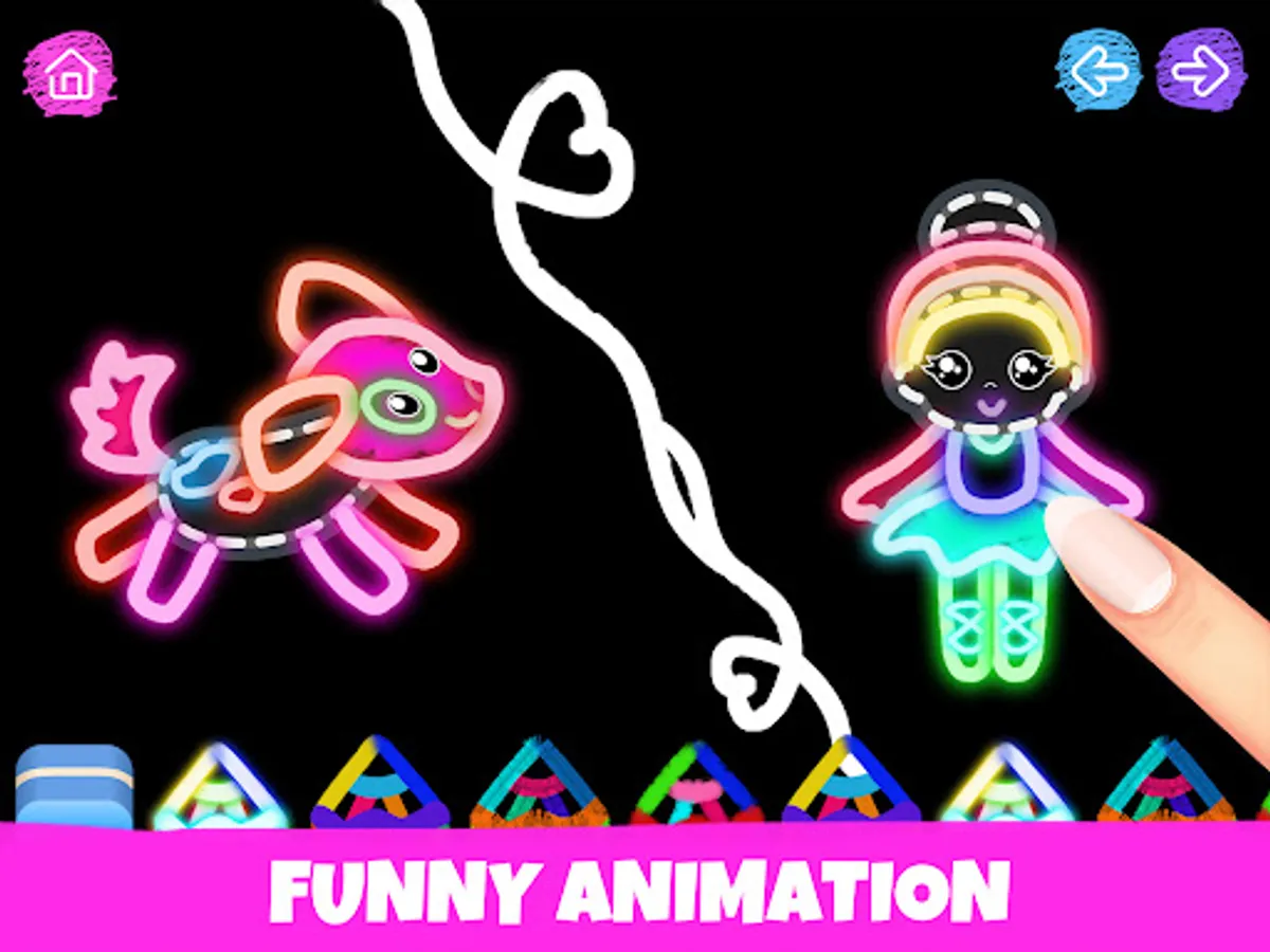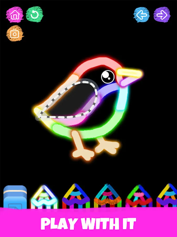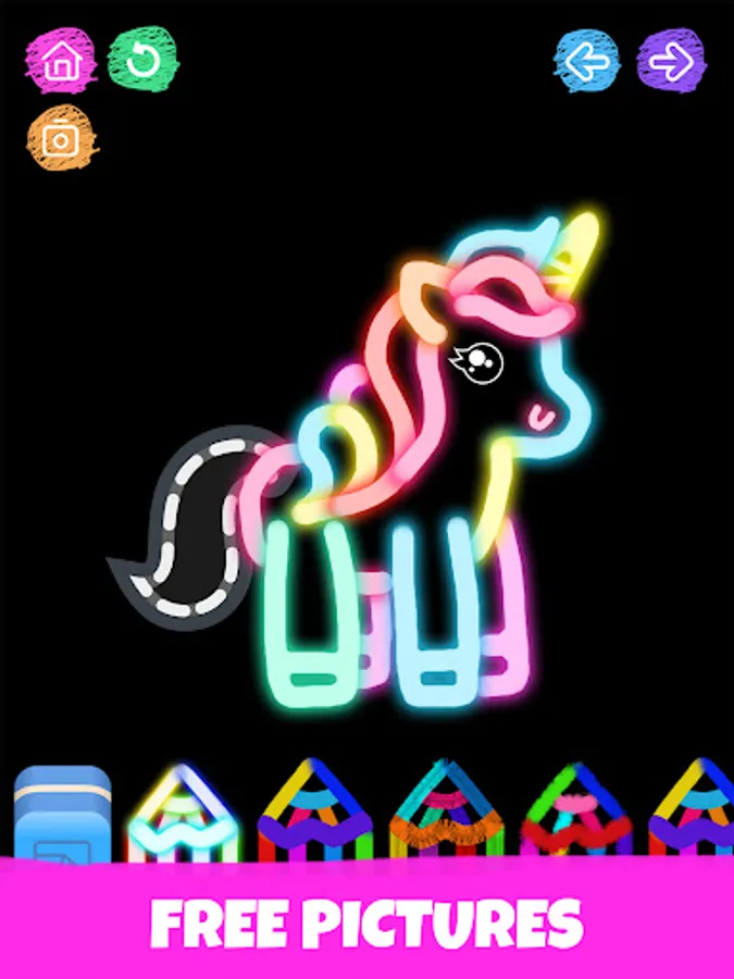 Here is a good opportunity for you to improve your creativity! Follow the lines and create colorful pictures to stimulate your unlimited imagination! Press the button to wake up the picture under the pen, make cute movements and make funny sounds! You can also replay the process of drawing and repeat the happy time.