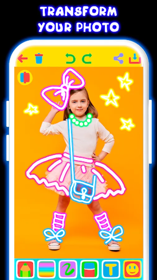 🍭 Select one of 17 magic brushes (neon, glow, rainbow, crayon, spray...)