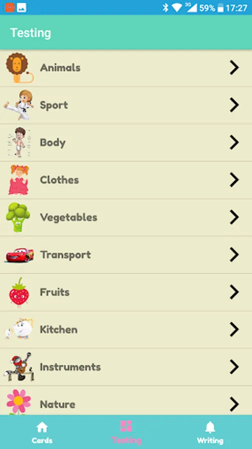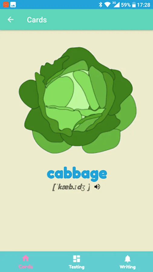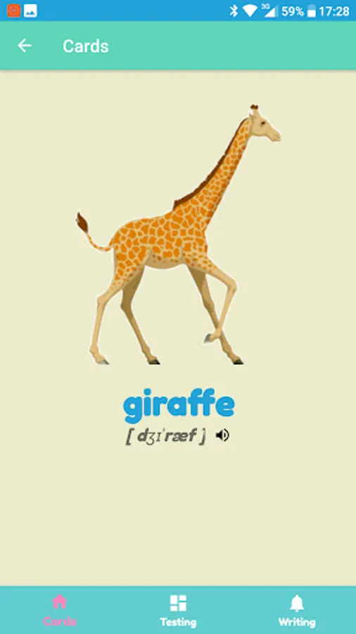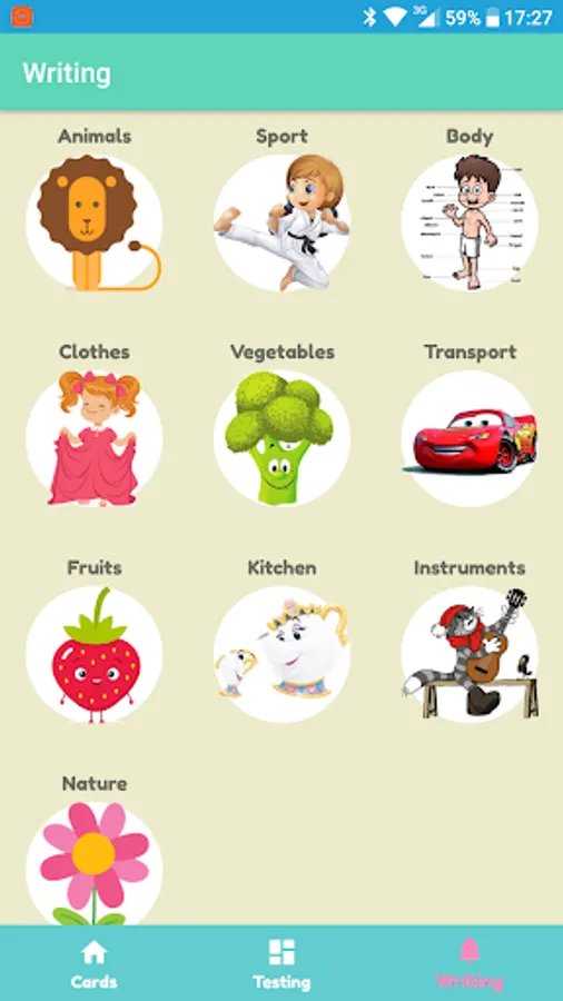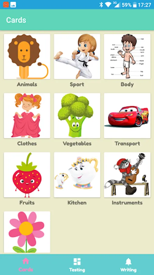 Application contains 10 categories (about 200 words with transcription and pronunciation):