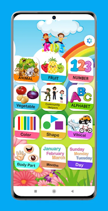 Through the application of teaching English for children, your child will learn how to pronounce numbers, letters, months of the year, days of the week and more categories by displaying high-resolution images and pronouncing the name of the item to make it easier for your child to link the pronunciation of the word with the shape displayed on the screen