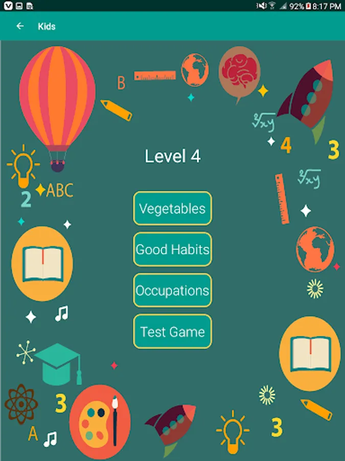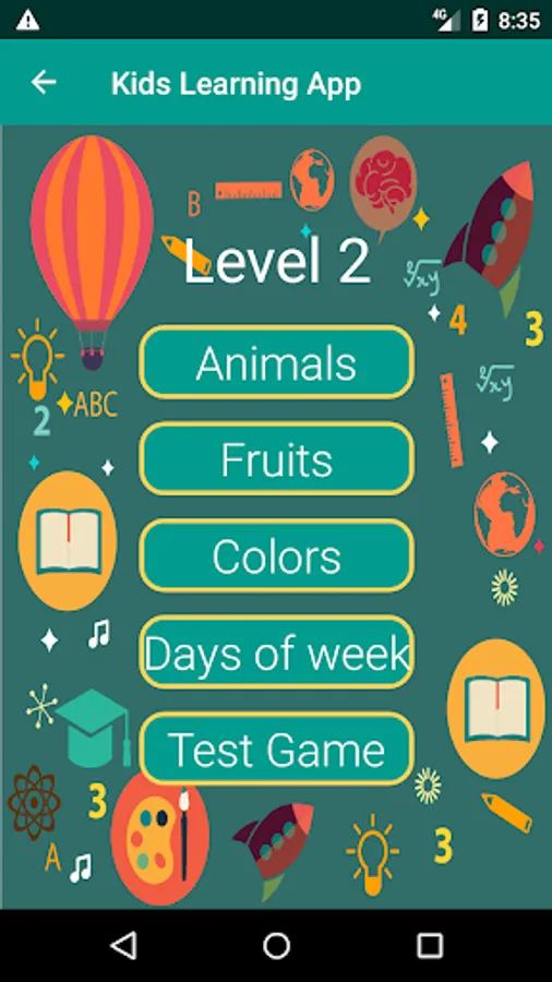 With ABC Kids Learning, your child will have access to a range of educational games and activities. They can learn about colors, vegetables, fruits, alphabets, animals, days of the week, flowers, good habits, occupations, and more! Our app also includes test games to help reinforce your child's knowledge.