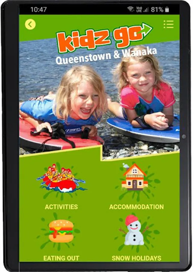 The Kidz Go app gives you all the on-the-go information you need to holiday, play and stay in Queenstown and Wanaka. Quickly discover the best family-friendly spots, what you can do with children of varying ages and how to please everyone with fun stuff to do and locals favourite locations!
