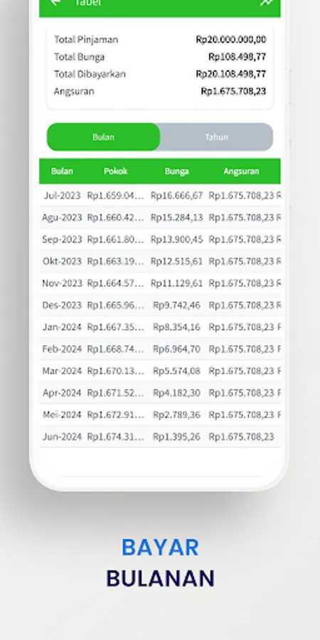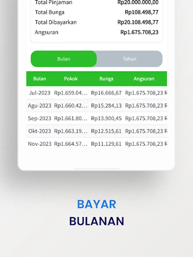 Monthly payment amount: IDR 2,000,000/12+24,567= IDR 191,233