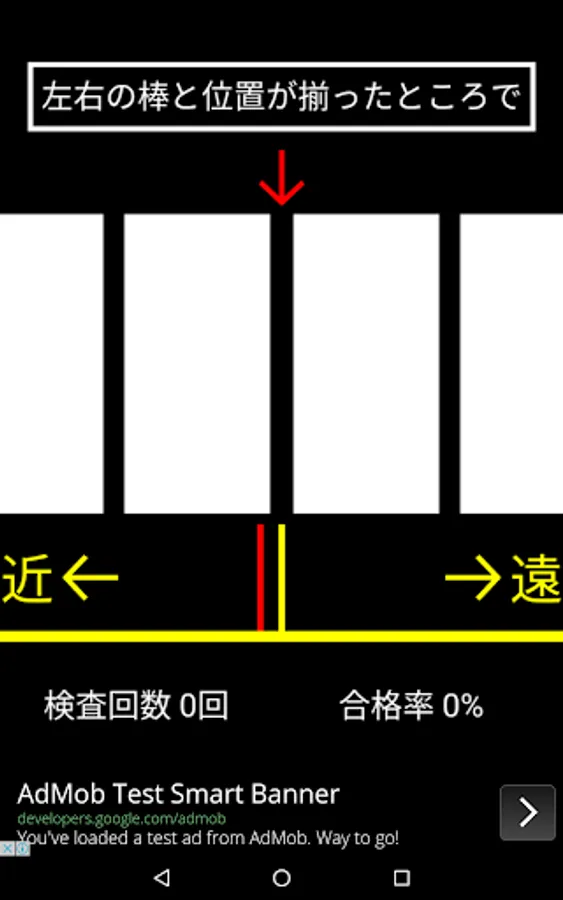 実際の深視力検査(三桿法)を想定したアプリです。