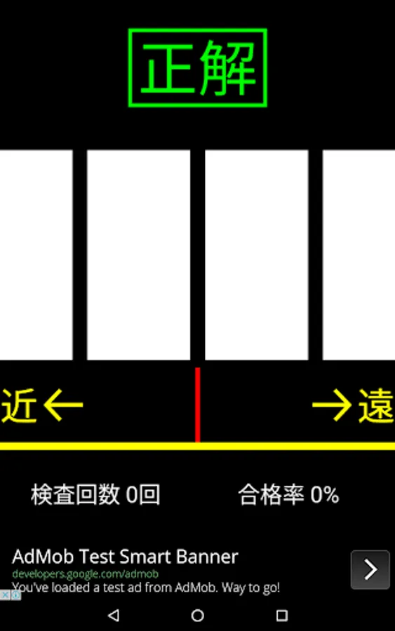なおこの検査は無限に繰り返されますので、練習を終えたい時、「戻るボタン」から「終了」してアプリを終えてください。