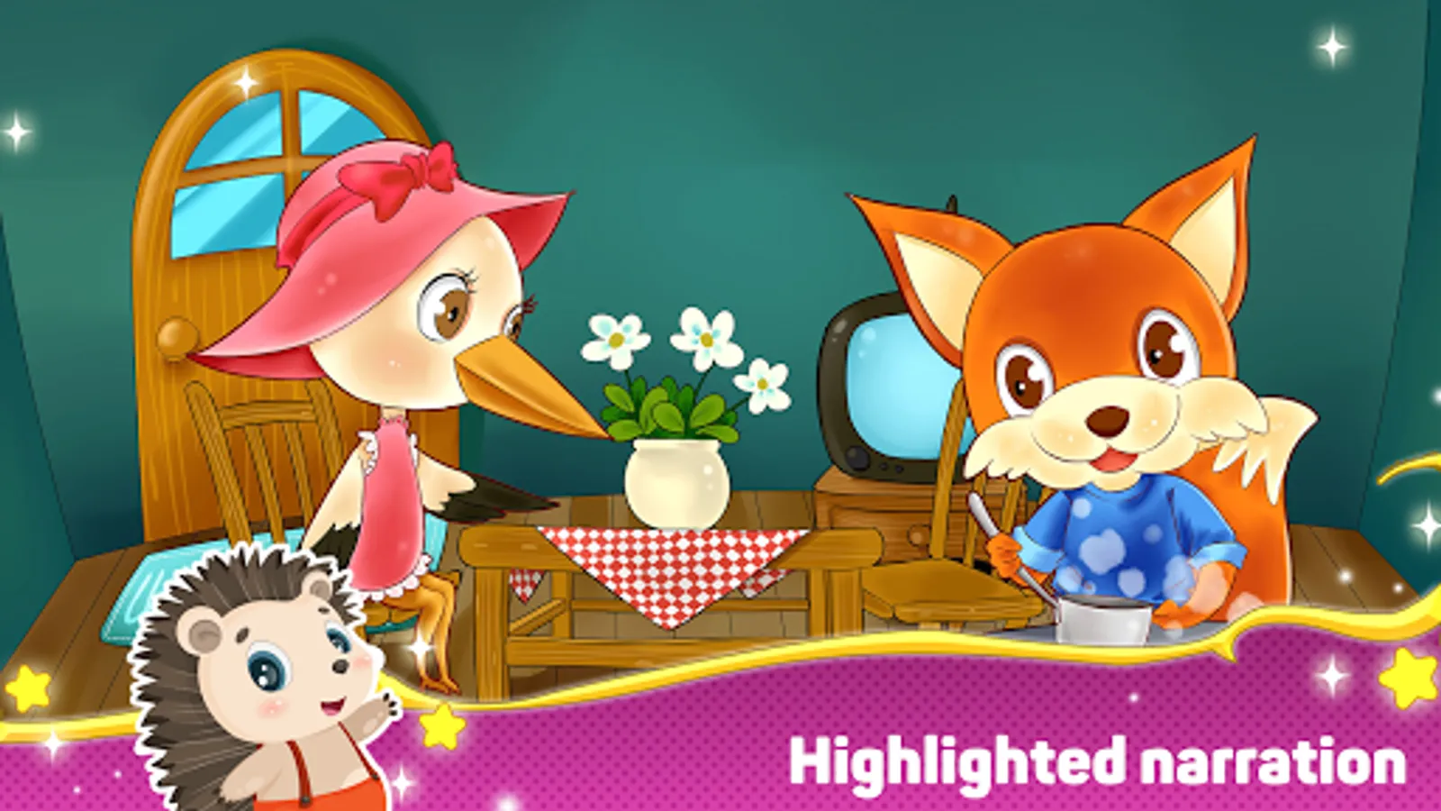 At one time, the Fox and the Stork seemed like very good friends. The Fox invited the Stork to dinner and, just for a joke, put nothing before her except some soup in a very shallow dish.