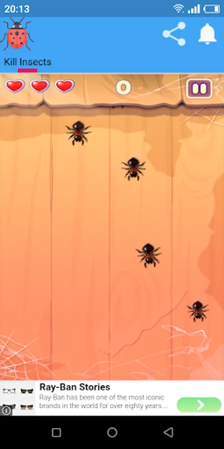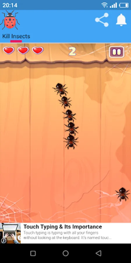game to improve the speed of clicks on a keyboard. It consists of killing a large number of insects by clicking on them quickly and using both hands. killing a large number of insects without letting them enter your territory gives you the opportunity to move from one level to another that is more difficult and requires more attention and speed. the game offers three chances before closing the game and redo from the beginning ...adventure that deserves to be lived!!!!