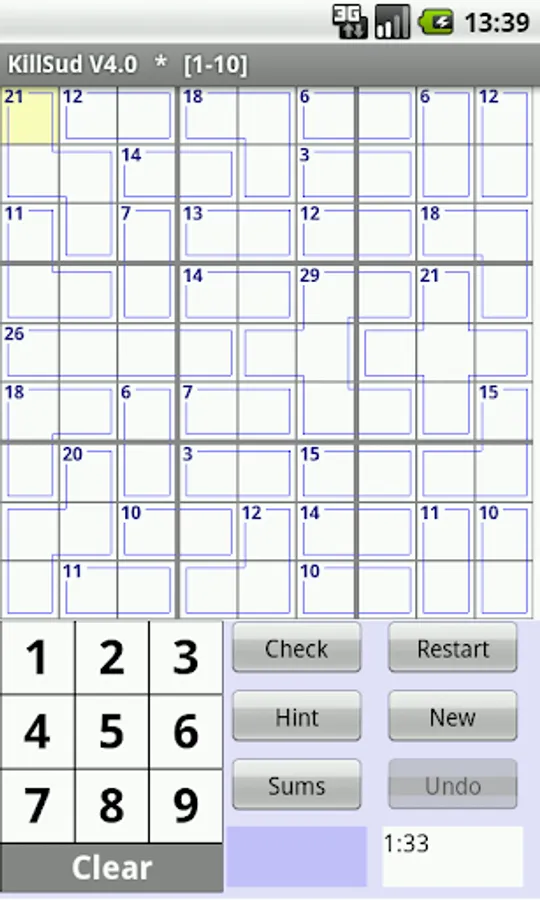 * KillSud contains over 4,000 puzzles ranging from fairly easy to really complicated in 6 levels of difficulty.