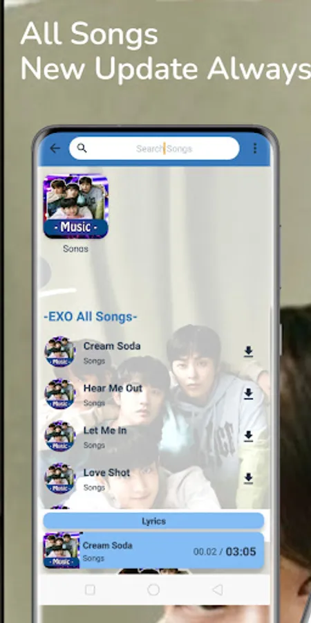 All songs in this app come with full lyrics. Users can read the lyrics along with the song playback, so they can easily follow and memorize favorite lyrics by EXO