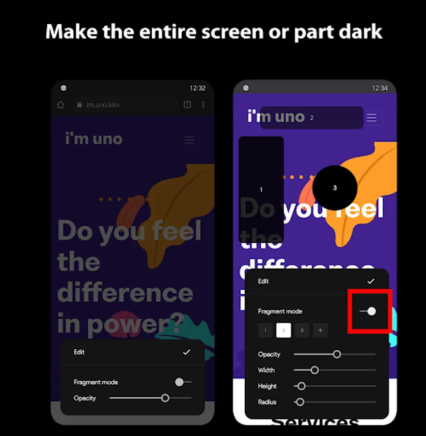 Just like a stationary button, only the location that causes the screen burn-in can be covered.