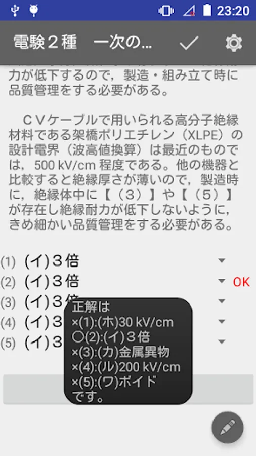 2. When you press the confirmation button, "OK" is displayed when the correct answer is given.