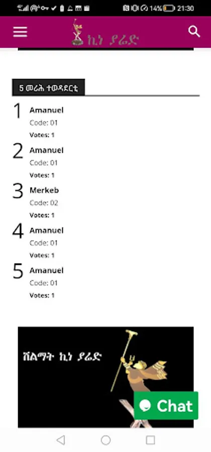 ኪነ ያሬድ is an app which enables people to vote their favorite artists online.