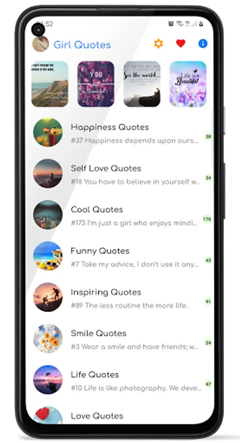 Starting a new day, you want to write something on your wall of social media but can't think of anything to write. You're going through hard times, need an extra motivation to get stuff done or you want to convey energy, positive messages to friends and family by best pictures and captions, … Girl quotes app is the number one choice for you with thousands of inspirational quotes along with high quality background images.