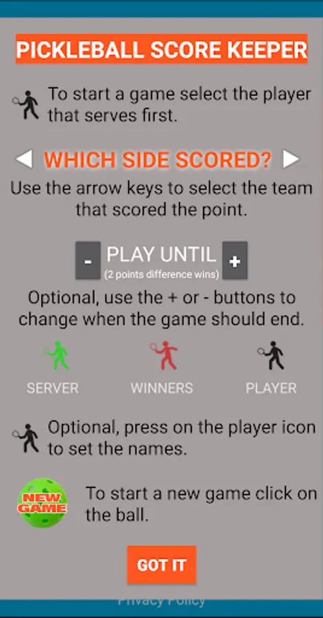 Never forget your score again. Pickleball Score Keeper is ideal for pros or beginners.