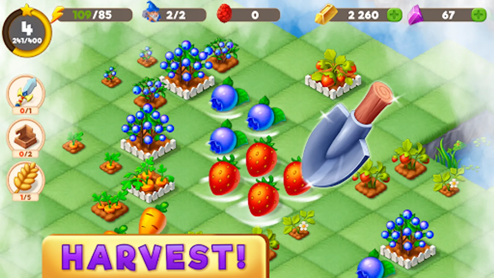 Grow crops and collect resources, design and develop your own kingdom! Matching and combining 3 or more items causes the evolution of each of them. On your game path you may meet dragons and monsters, but remember that the main task is to merge objects in order to develop your lands! The game has different characters and each of them has its own unique and exciting story! They will help you raise an population, expand your possessions and turn the kingdom into a prosperous state.