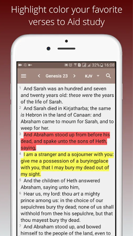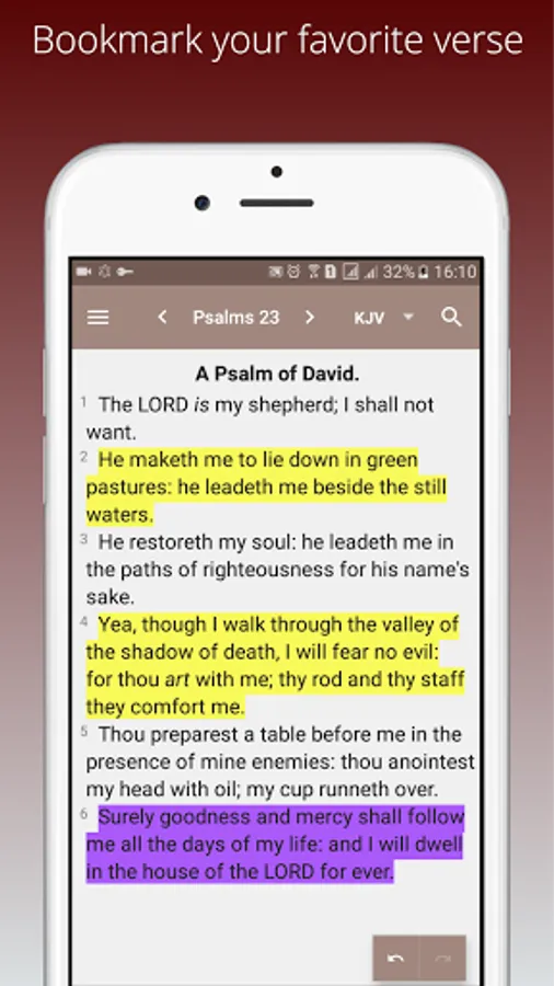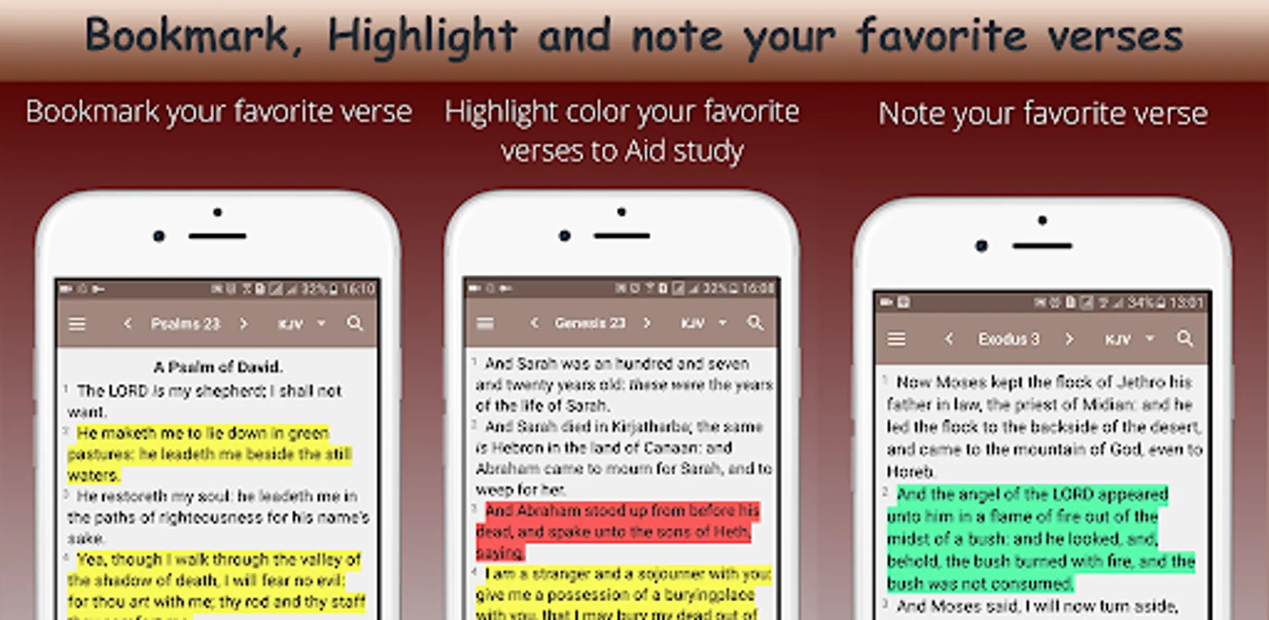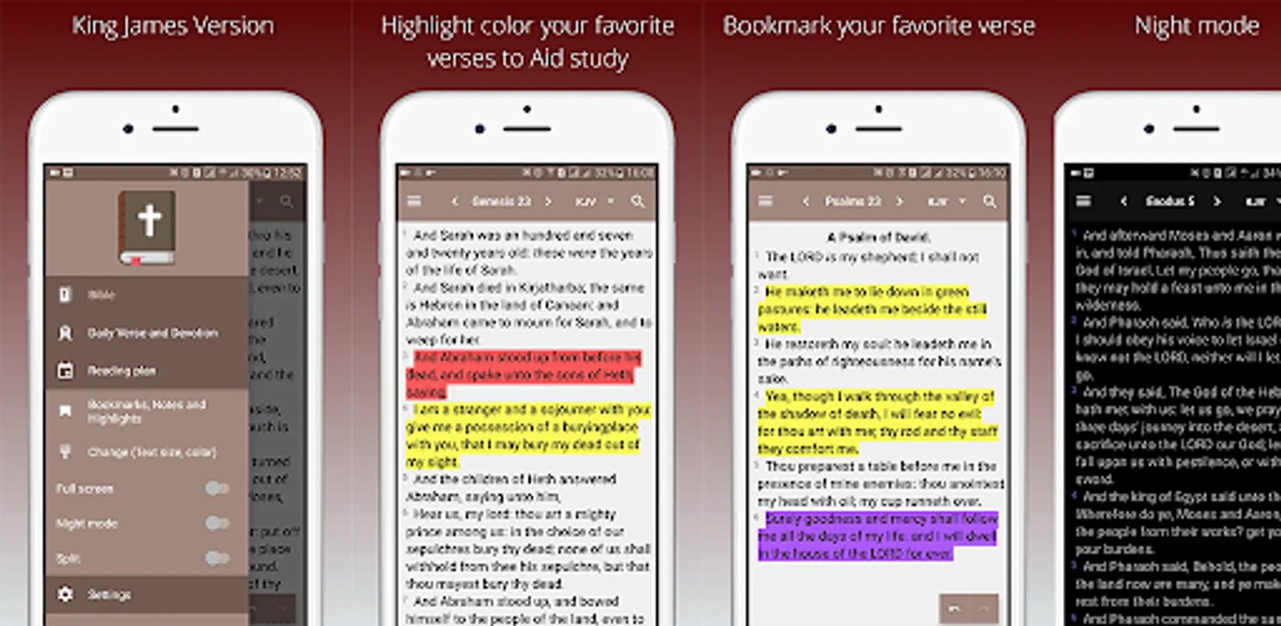 King James version Bible offline with daily devotion for your Bible devotion, daily reading, daily verses, Bookmarks, Note and Highlights. Highlight verses you have read with colorful markers. You can continue reading from your last read verse without getting lost.