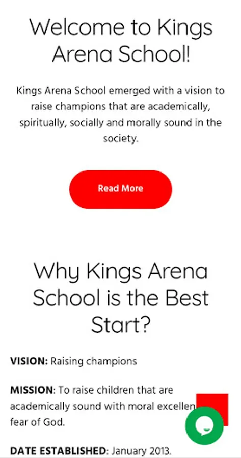 Kings Arena School emerged with a vision to raise champions that are academically, spiritually, socially and morally sound in the society. The school is a motivating one for learners to develop their creative thinking skills for personal development in the future. The School aims at developing the core values in the children in order to ensure that all learners acquire the knowledge and skills needed to achieve the best quality education for a sustainable path in the future. We are technologically based and we have highly skilled professionally teachers with a conducive environment for learning.