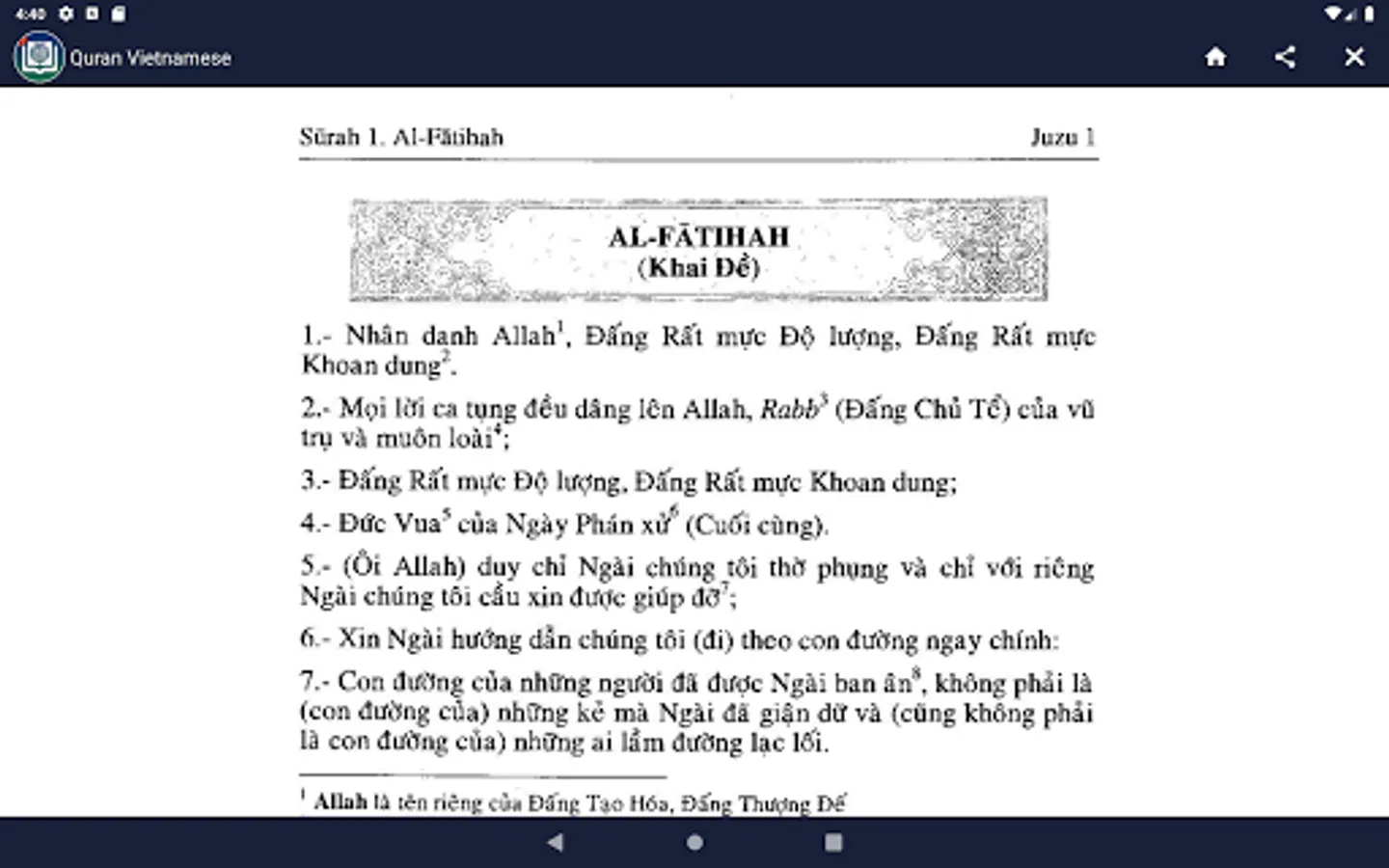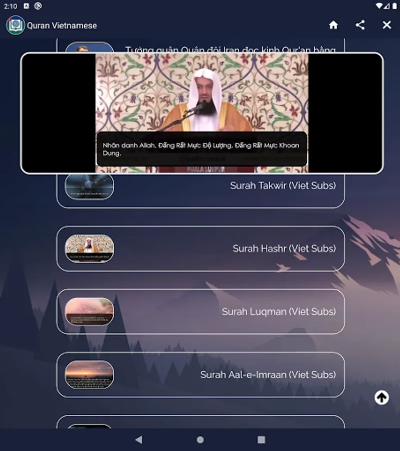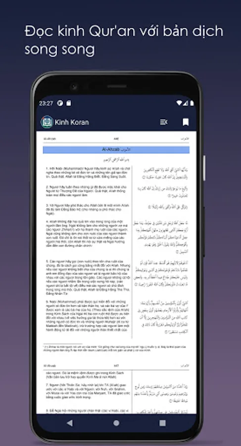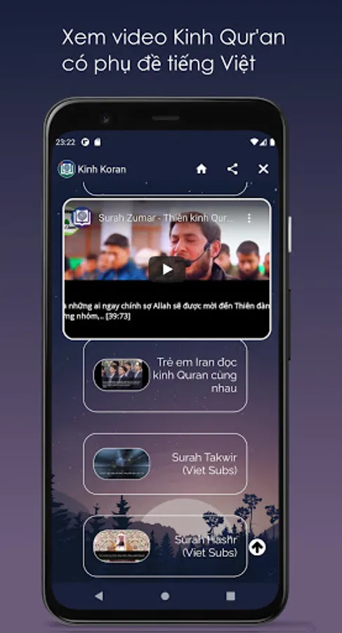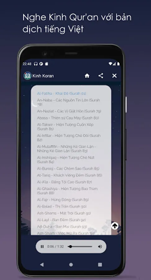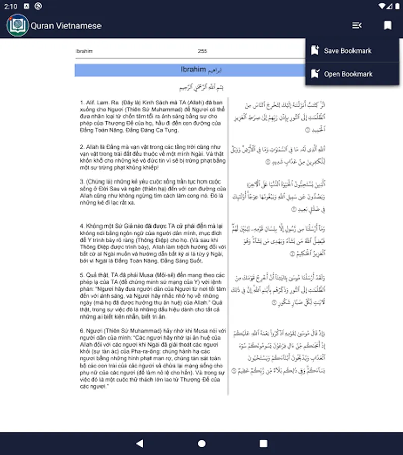 Quran Vietnamese lets you read / listen / watch The Holy Quran with Vietnamese translation.