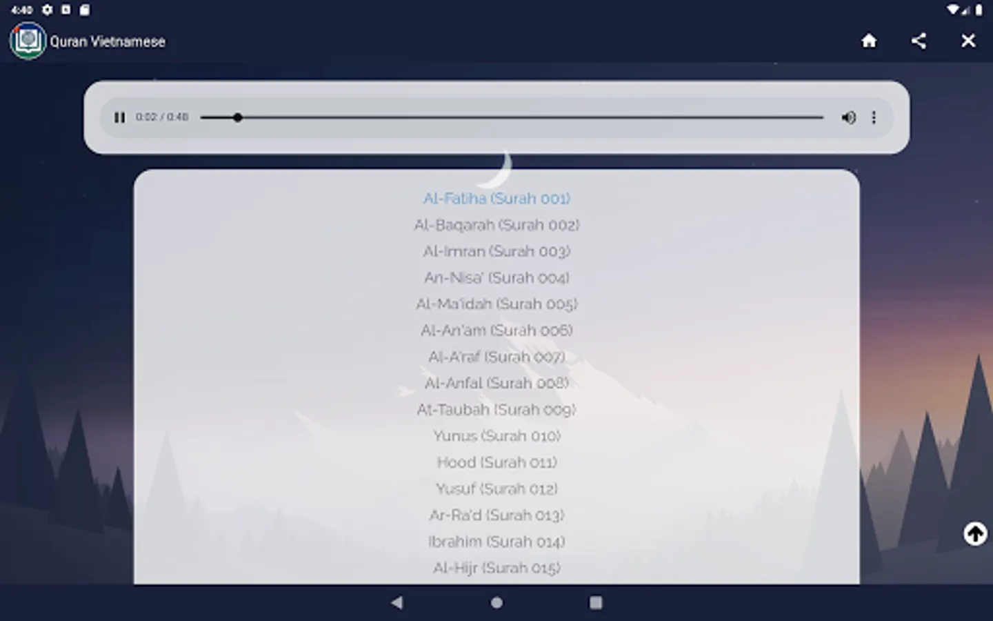 - Listen to some Surahs of the Quran with Vietnamese audio translation (MP3 Audio)