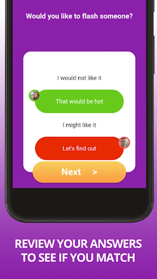 You've seen similar couples games out there, such as the Match Game, Dating Game, Newlywed Game, Not so Newlywed game, and Mr and Mrs. They have been watched on TV, and have even been made into board games. In-person games like a Hen Parties and Bachelorette Parties have been around forever. With these games everyone would take a love quiz or a sexy survey to see how they match. Now this fantastically easy and fun game to play is available on your phone! Download now!