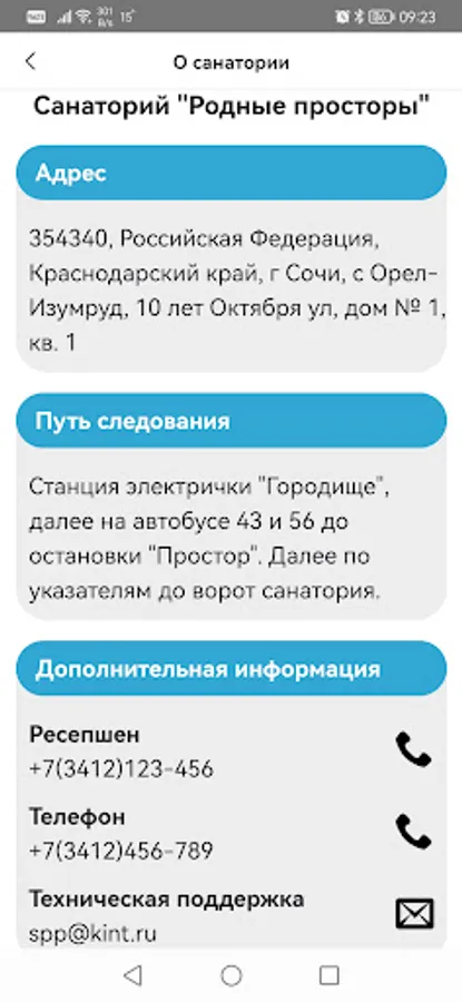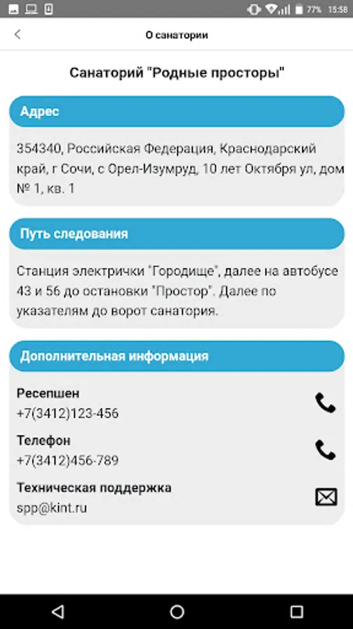 1. Find out useful information about the contact persons of the sanatorium.