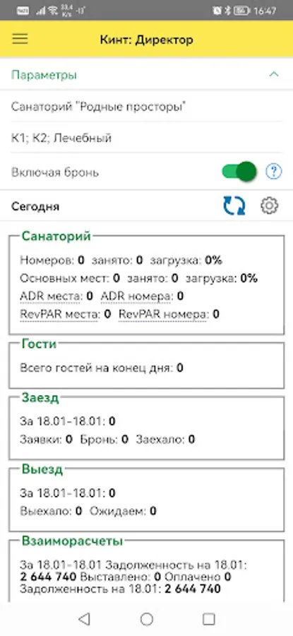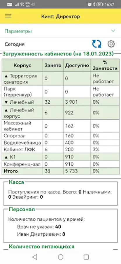 The mobile application is used as an addition to the software products "Kint: Sanatorium Management", "Accounting. Analysis. Office 8" and "Kint: Crop Production".