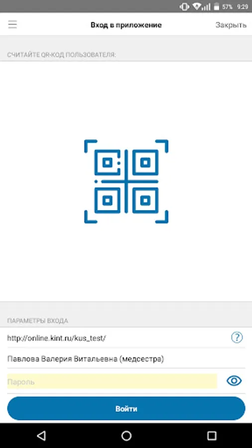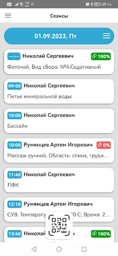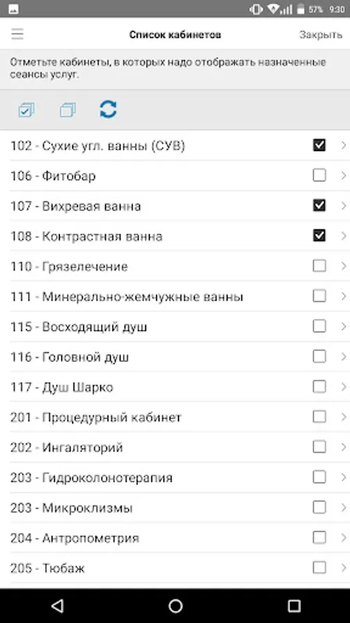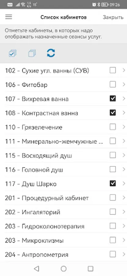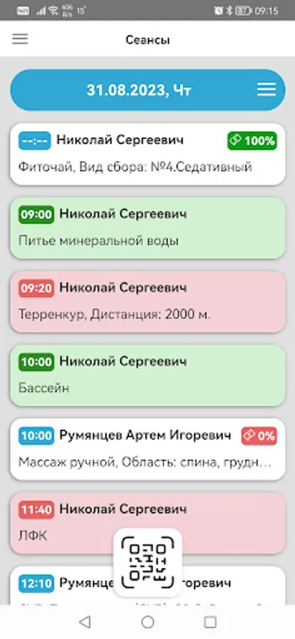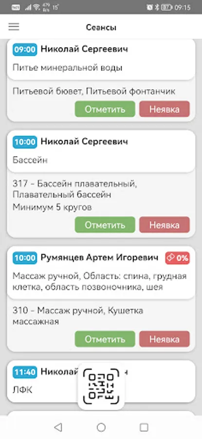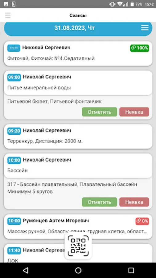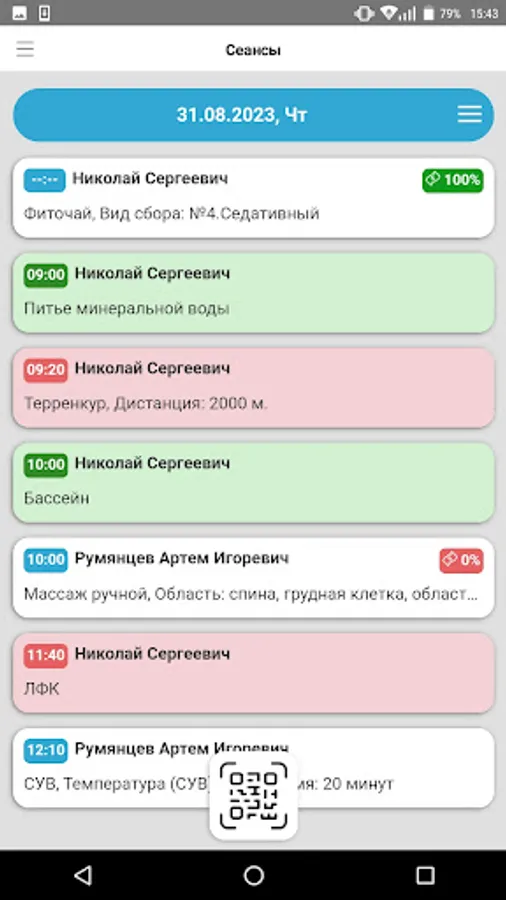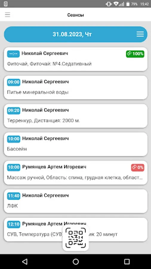 Mobile interface for the employees of the sanatorium. Allows you to mark the passage of services (procedures) of patients in certain rooms.