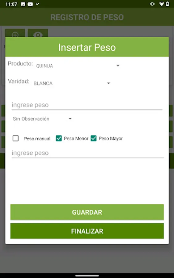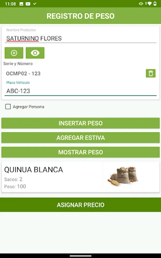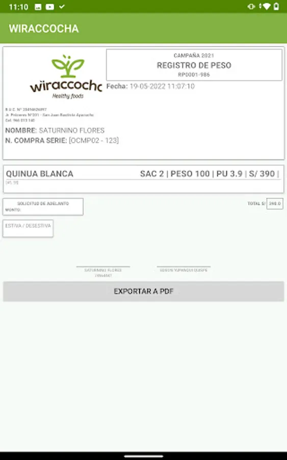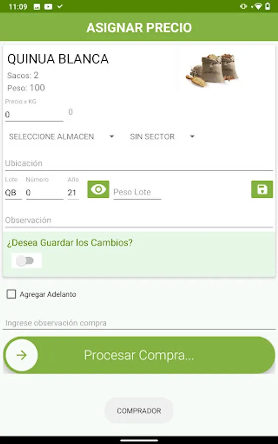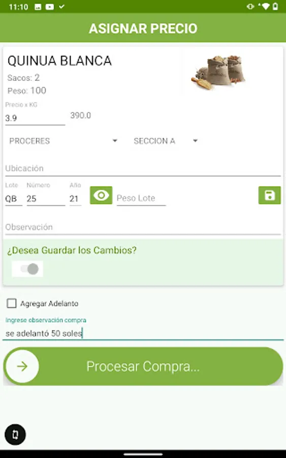 purchase of raw materials such as quinoa, amaranth, chia, cañihua, maca, ginger, etc.