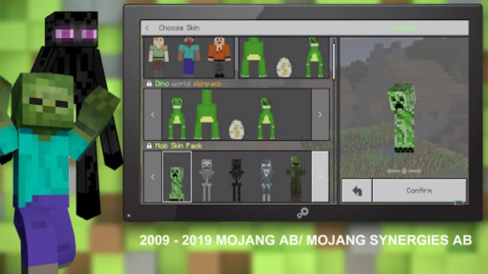 very cool pack of skins, installing it you can turn into an iron golem, creepers and a bunch of other mobs in Minecraft PE.