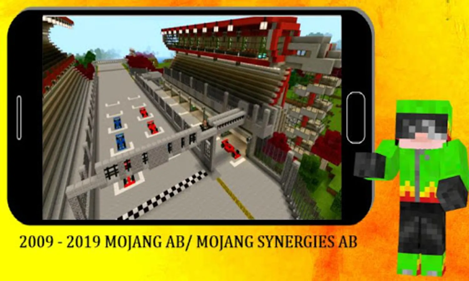 This map takes car racing to an entire new level in Minecraft Pocket Edition. It consists of one great racing track which even at top speed will take several minutes to complete. Along the track there are multiple spectator stands and other cool details. Take this opportunity to participate in your very first (I would assume) World Champion Grand Prix (but in a somewhat more blocky and pixelated environment)!